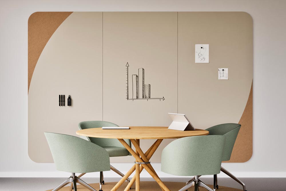 CHAMELEON est née de l’idée d’intégrer le design dans le développement des tableaux d’écriture pour équiper les espaces tertiaires et collectifs et participer ainsi à une communication fluide et efficace entre tous les acteurs.